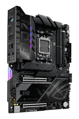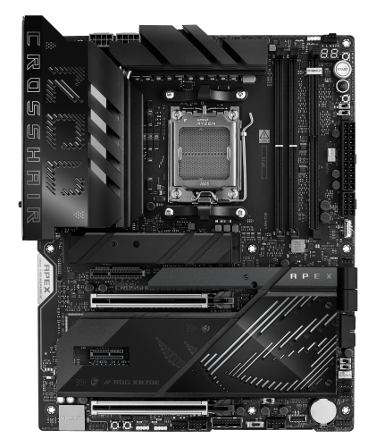 ASUS ROG CROSSHAIR X870E APEX. Fabricante de procesador: AMD, Socket de procesador: Zócalo AM5, Procesador compatible: AMD Ryzen 7000 Series, AMD Ryzen 8000 Series, AMD Ryzen 9000 Series. tipos de memoria compatibles: DDR5-SDRAM, Memoria interna máxima: 128 GB, Tipo de ranuras de memoria: DIMM. Interfaces de disco de almacenamiento soportados: M.2, SATA III, Tipos de unidades de almacenamiento admitidas: HDD & SSD, Niveles RAID: 0, 1, 5, 10. Tipo de interfaz ethernet: 5 Gigabit Ethernet, Estándar Wi-Fi: Wi-Fi 7 (802.11be), Wi-Fi estándares: Wi-Fi 7 (802.11be). Componente para: PC, Factor de forma: ATX, Familia del chipset: AMD