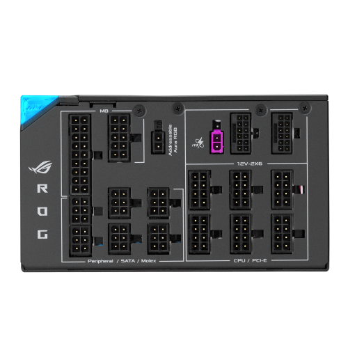 ASUS ROG -THOR-1600T3-GAMING. Potencia total: 1600 W, Voltaje de entrada AC: 100 – 240 V, Corrección del factor de potencia tipo (PFC): Activo. Alimentador de energía para tarjeta madre: 20+4 pin ATX, Longitud del cable de alimentación de la placa base: 61 cm, Longitud del cable de alimentación SATA: 120,400 mm. Utilizar con: PC, Factor de forma de fuente de alimentación (PSU): ATX, Certificación 80 PLUS: 80 PLUS Titanium. Color del producto: Gris, Tipo de enfriamiento: Activo, Número de ventiladores: 1 Ventilador(es). Cables incluidos: CPU, PCIe, Peripheral (Molex), SATA