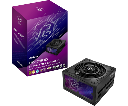 FUENTE ALIMENTACION ASROCK PG-750G,PSU,750W,80 PLUS GOLD/A,135MM,MODULAR,PCI-E 5.1 (12+4pin)x1,PCI-E (6+2 pin)x3,SATA (5 pin)x9