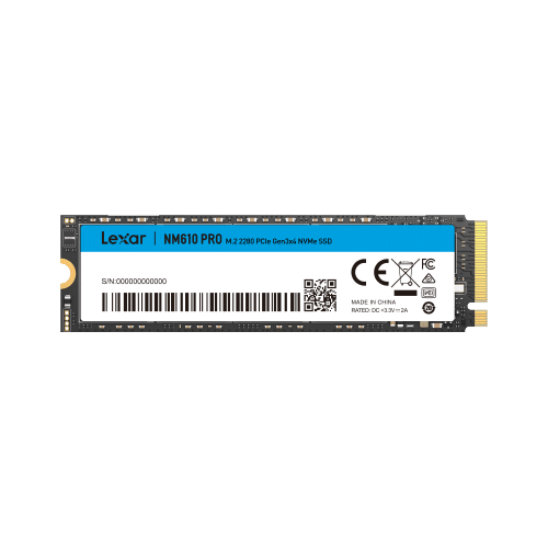 Lexar NM610PRO. SDD, capacidad: 2 TB, Factor de forma de disco SSD: M.2, Velocidad de lectura: 3300 MB/s, Velocidad de escritura: 2600 MB/s, Componente para: PC/ordenador portátil