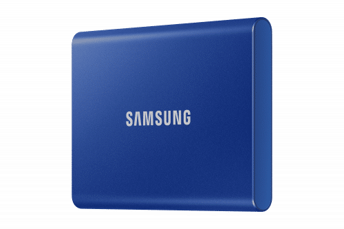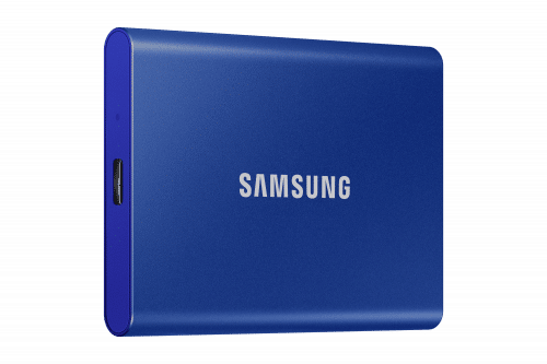 Samsung Portable SSD T7. SDD, capacidad: 2000 GB. Conector USB: USB Tipo C, Versión USB: 3.2 Gen 2 (3.1 Gen 2). Velocidad de lectura: 1050 MB/s, Velocidad de escritura: 1000 MB/s. Protección mediante contraseña, Color del producto: Azul